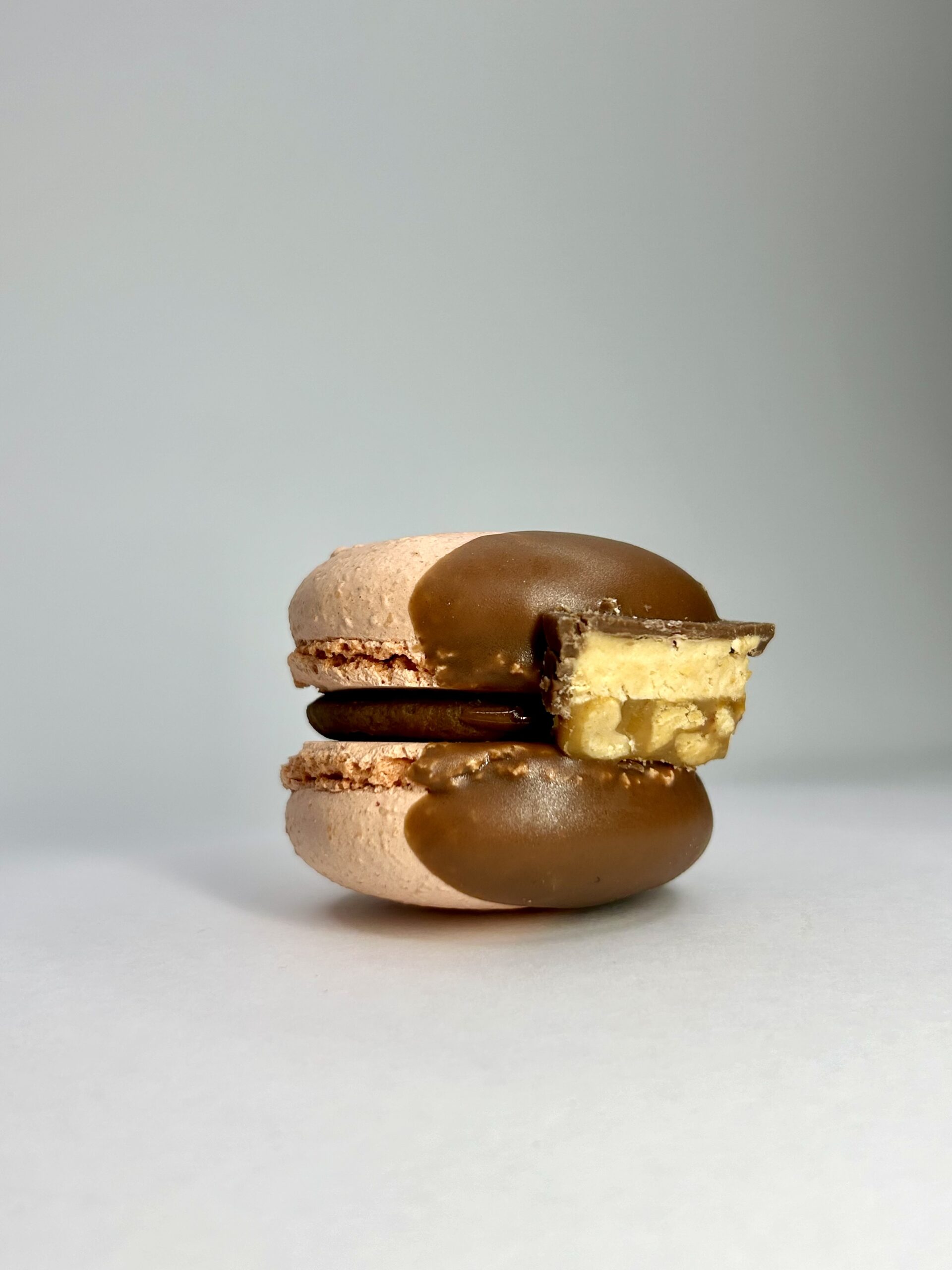 Sudedamosios dalys: migdolųmiltai, cukrus, vanduo, cukraus pudra (sacharozė, bulvių krakmolas), albuminas (KIAUŠINIŲ BALTYMŲ milteliai*, stabilizatorius (E415), putojimą sukelianti medžiaga (E1505). *iš narvuose laikomų vištų kiaušinių), pieninis šokoladas (cukrus, kakavos sviestas, nenugriebto pieno milteliai, kakavos masė, emulsikliai (sojų lecitinas (E322)), grietinėlė, žemės riešutų kremas (skrudinti žemės riešutai 97%, cukrus, žemės riešutų aliejus, jūros druska), druska, cukrus, sviestas, kakavos sviestas, vandenyje tirpūs maistiniai dažai (geltoni (E102), raudoni (E124)). Maistiniai dažai gali neigiamai paveikti vaikų aktyvumą ar dėmesį.
